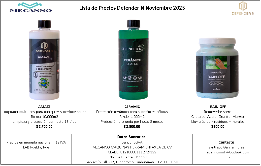 DefenderN — Limpieza y protección a base de nanotecnología
